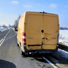Na drodze wojewódzkiej nr 667 (DW667), przy skręcie na Rakowo Małe, doszło do zderzenia samochodu osobowego marki BMW z dostawczym Mercedesem Sprinterem.