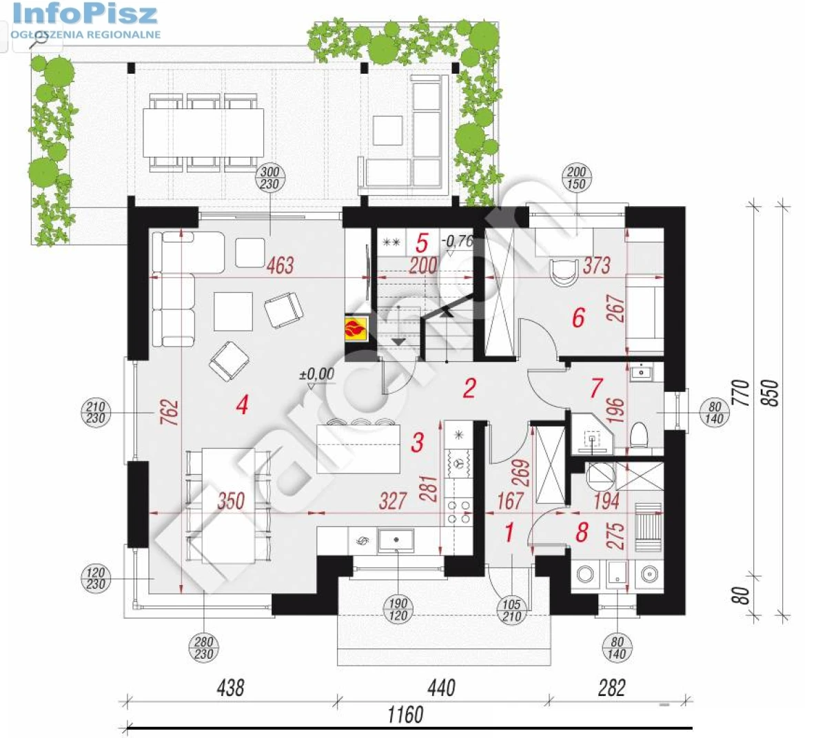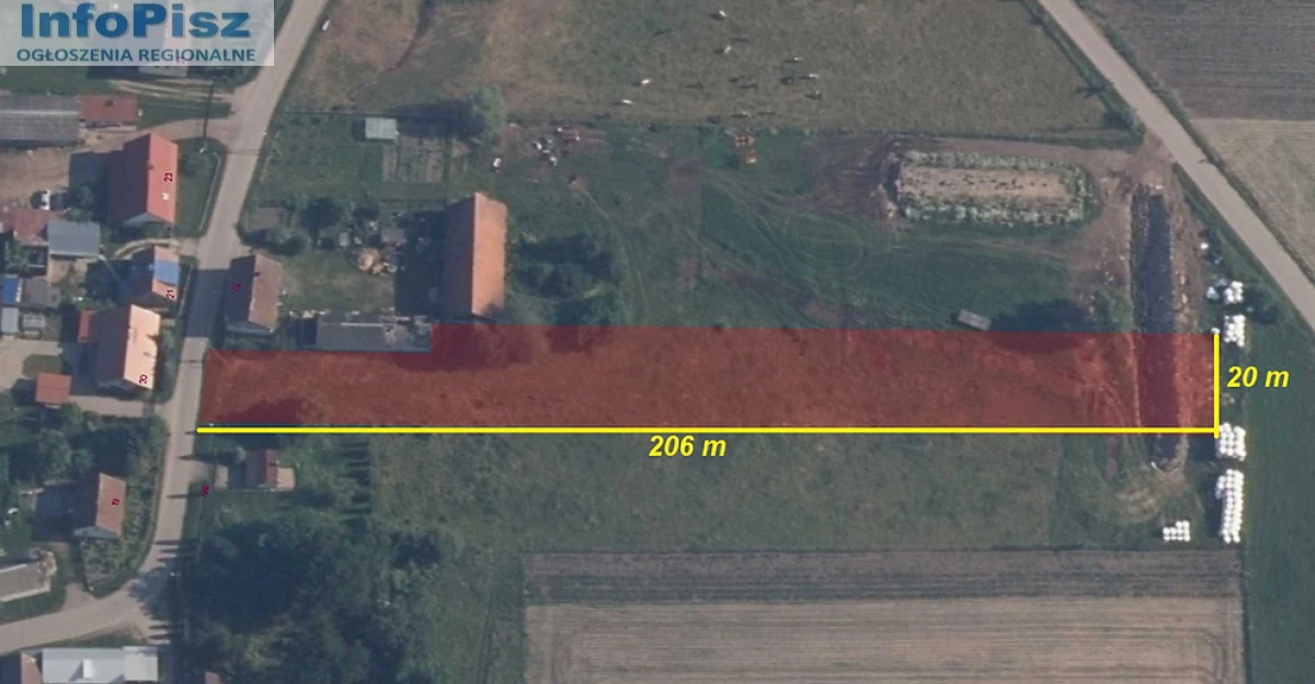 Działka o powierzchni 3600 m² przeznaczona pod zabudowę mieszkaniową. W trakcie procedury uzyskania decyzji o warunkach zabudowy dla domu według projektu "Dom w Wisteriach" o powierzchni użytkowej 129,97 m².