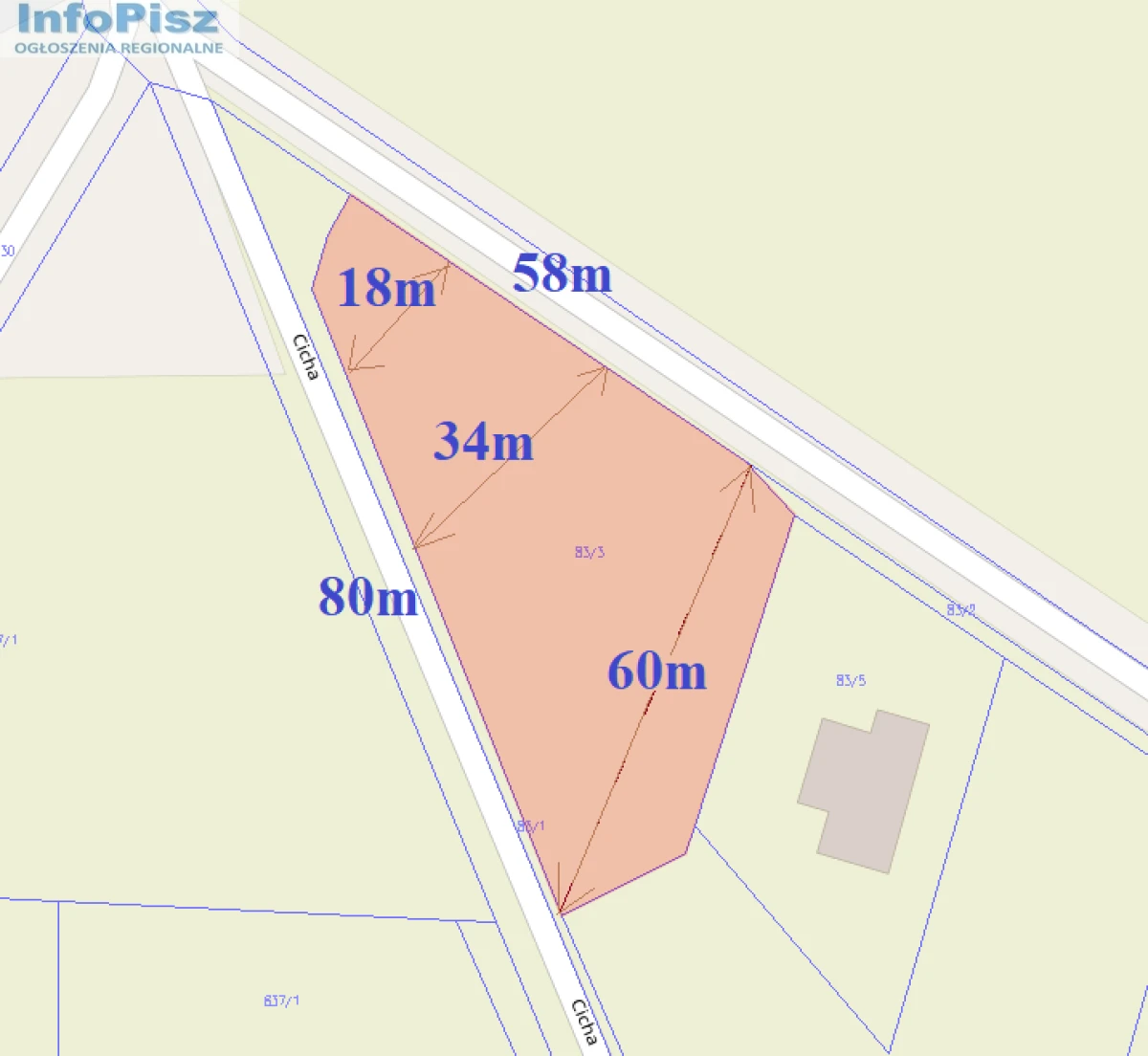 adres: Łupki,ul. Cicha, nr działki 83/3, Gmina Pisz.