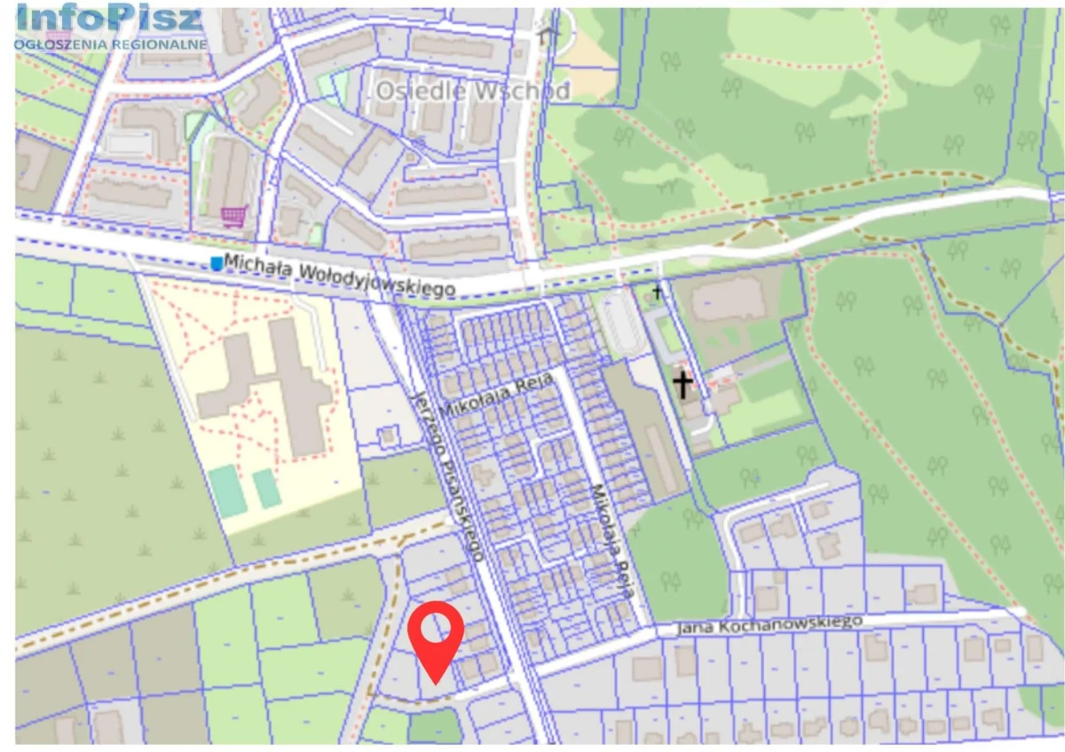 Sprzedam działkę budowlaną zlokalizowaną na osiedlu domów jednorodzinnych w Piszu przy ul. Pisańskiego nr. geod 1876/8 o powierzchni 945m2