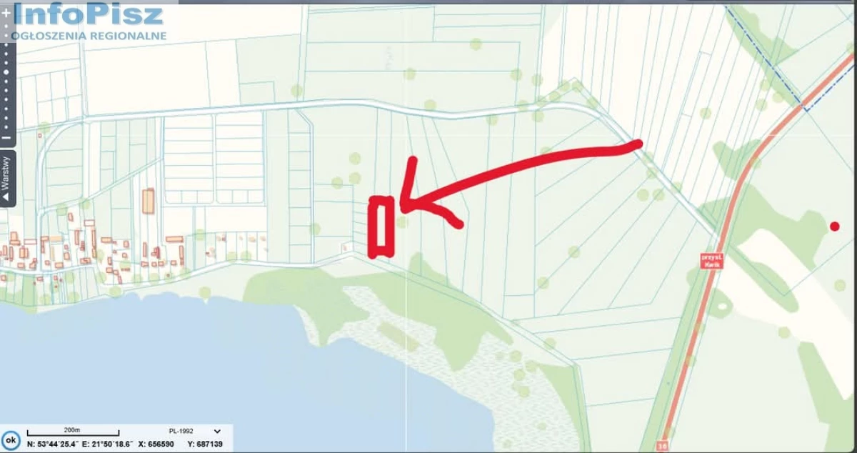 Cena do negocjacji Na sprzedaż działka nr 189/6 w Kwiku gmina Pisz powierzchnia 4442 m2 cena 178 000 zł