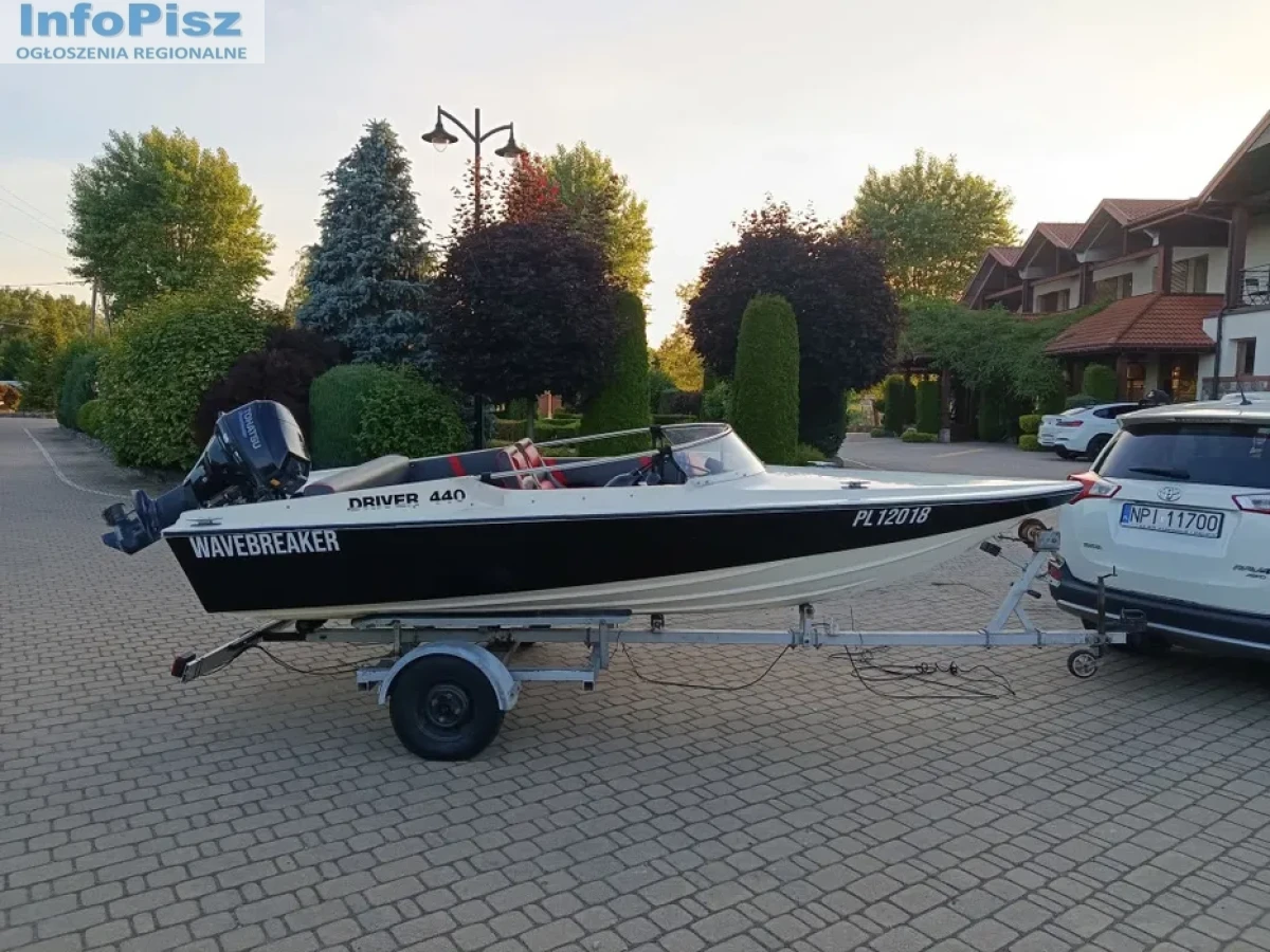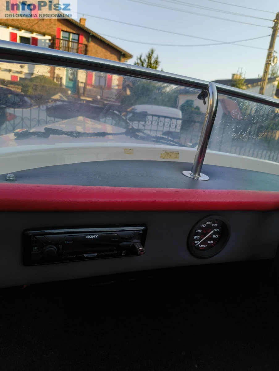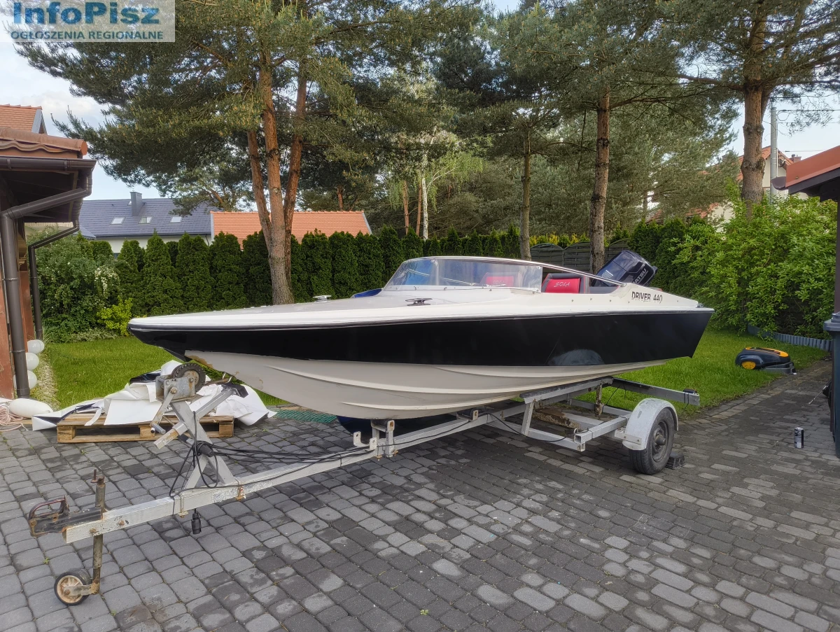 Witam, na sprzedaż łódź motorowa Driver 440 z silnikiem Tohatsu 20 koni 4-suw świeżo po serwisie olejowym z nowymi świecami. Silnik pracuje równo nie przerywa. Nowy bak paliwa ze wskaźnikiem poziomu oraz nową linią paliwową. Radio SONY z bluetooth, oraz nowe głośniki odporne na zalania wodą wraz z odpowiednim akumulatorem. Świeżo obity środek tapicerką wraz z nową kierownicą oraz okleiną. 4 srebrne knagi. Nowe sterociągi chodzą bardzo gładko. W zestawie nowe odboje 4szt. dwie nowe cumy, plandeka do przykrycia oraz kotwica. Łódź posiada uchwyt na wędkę. Łódkę sprzedaję wraz z przyczepką.