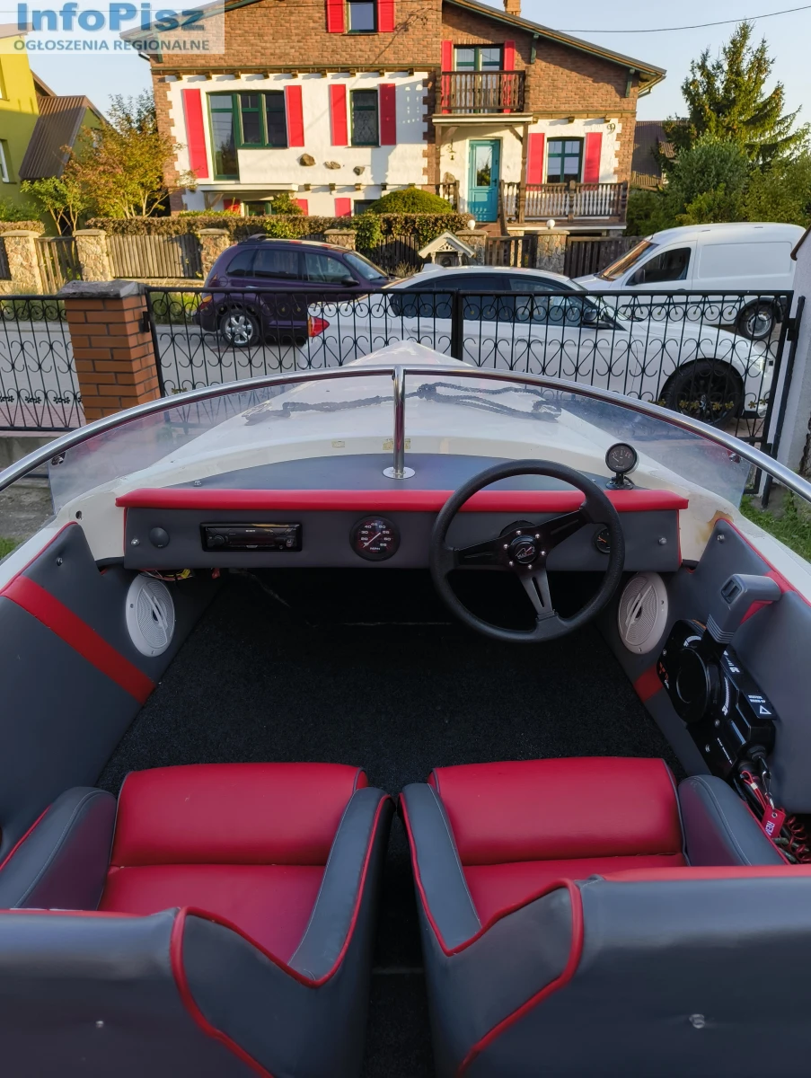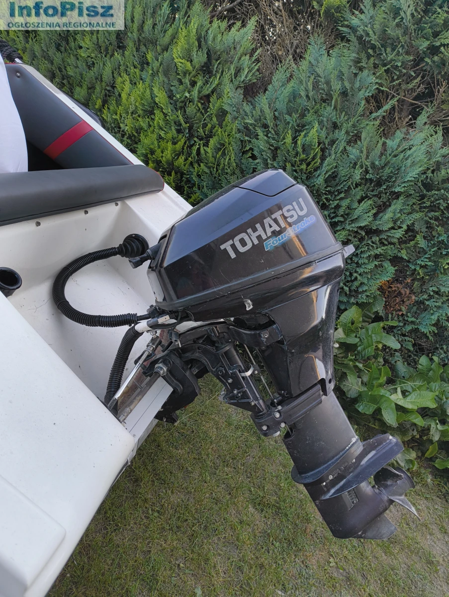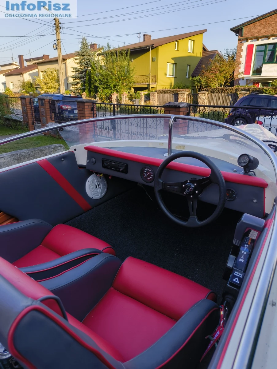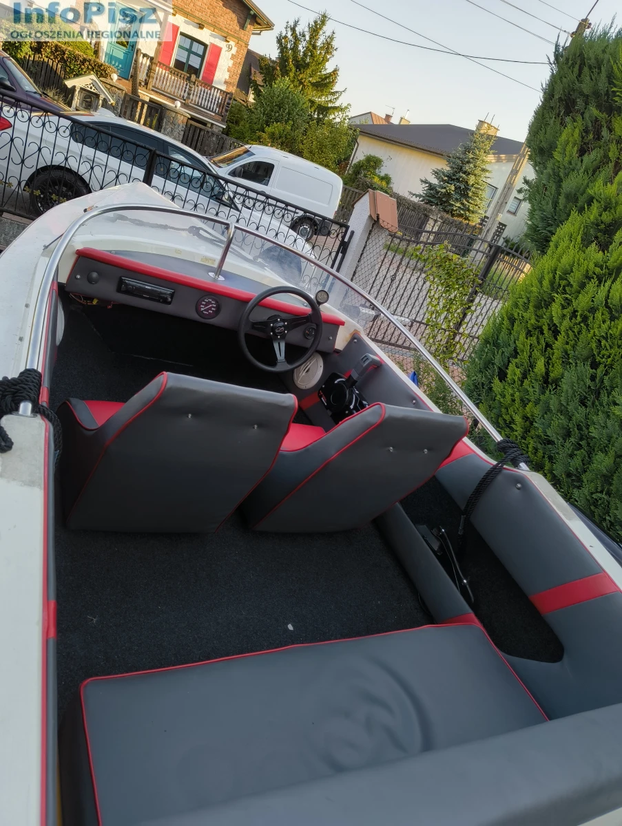 Witam, na sprzedaż łódź motorowa Driver 440 z silnikiem Tohatsu 20 koni 4-suw świeżo po serwisie olejowym z nowymi świecami. Silnik pracuje równo nie przerywa. Nowy bak paliwa ze wskaźnikiem poziomu oraz nową linią paliwową. Radio SONY z bluetooth, oraz nowe głośniki odporne na zalania wodą wraz z odpowiednim akumulatorem. Świeżo obity środek tapicerką wraz z nową kierownicą oraz okleiną. 4 srebrne knagi. Nowe sterociągi chodzą bardzo gładko. W zestawie nowe odboje 4szt. dwie nowe cumy, plandeka do przykrycia oraz kotwica. Łódź posiada uchwyt na wędkę. Łódkę sprzedaję wraz z przyczepką.