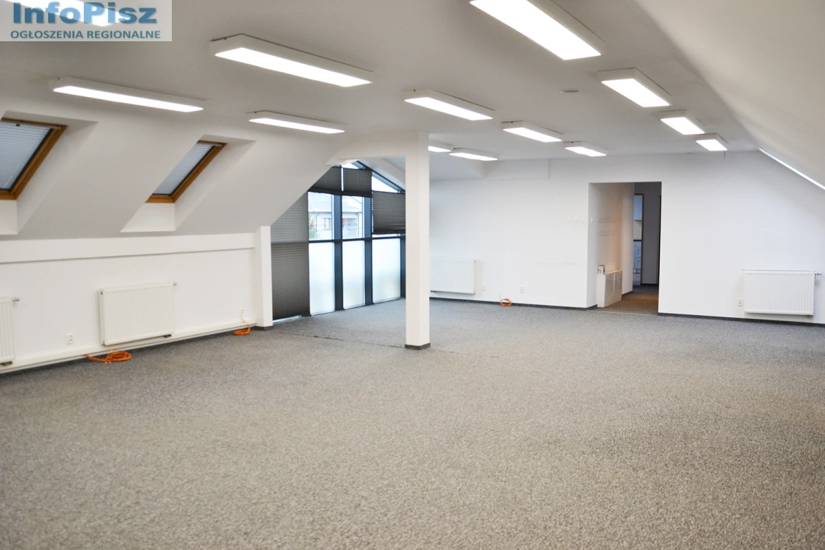 Do wynajęcia nowoczesny lokal usługowo-biurowy nad obiektem handlowym (sklep Prim Market) o pow. 128 m2 – funkcjonalna powierzchnia składająca się z czterech pomieszczeń biurowych (w tym jedno 83 m2) oraz umeblowanego zaplecza socjalnego. Posadzki w części biurowej wykończone wykładziną. Pomieszczenia są w pełni wyposażone m.in. oświetlenie LED, infrastruktura sieciowa, instalacja alarmowa, rolety w oknach.
