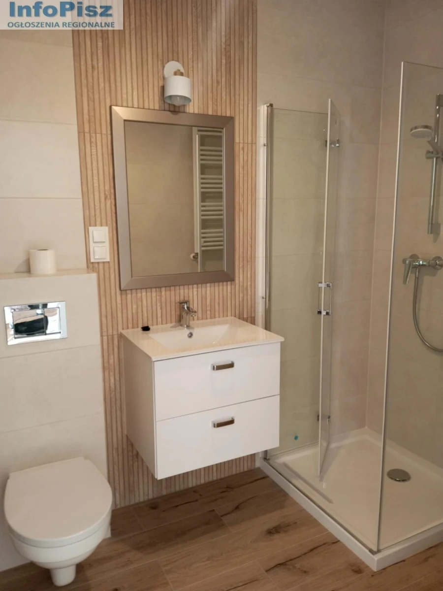 Wynajmę mieszkanie w Piszu na ul.Kwiatowej, 42m2 - salon z aneksem kuchennym,sypialnia z garderobą, łazienka, balkon. Częściowo umeblowane,wyposażone w pralkę , indukcję, piekarnik, lodówkę. Dodatkowo miejsce parkingowe w garażu podziemnym. Mieszkanie znajduje się na 4 piętrze, nowy blok z windą.