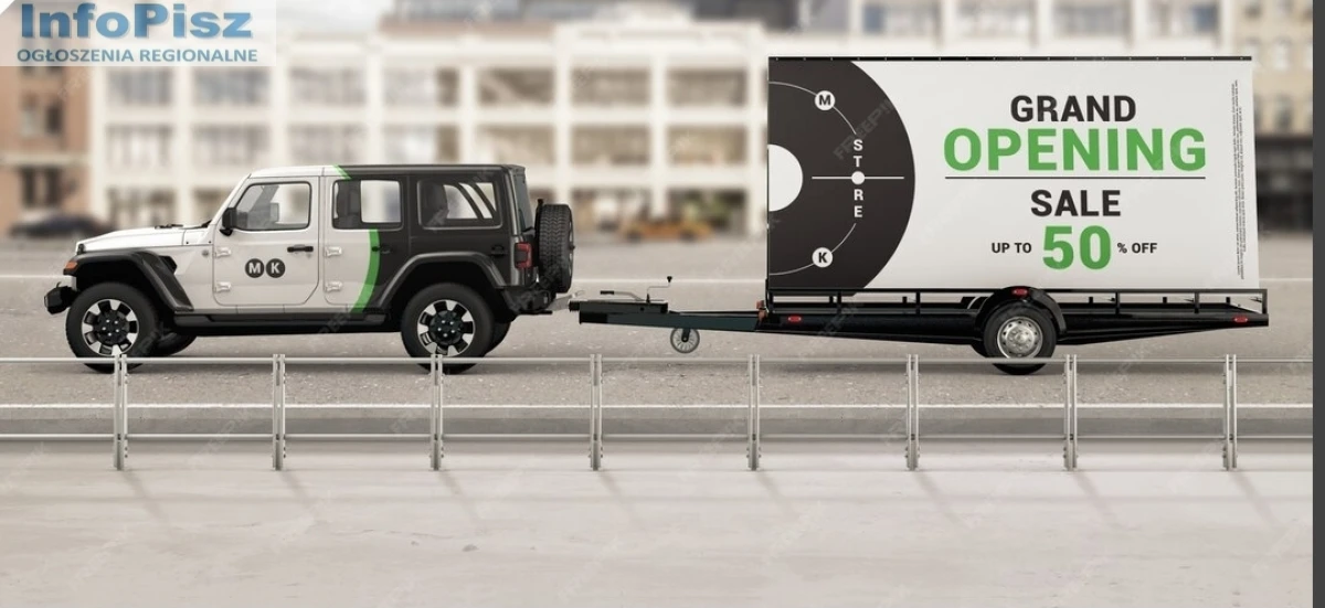 Reklama mobilna, przyczepka reklamowa do wynajęcia.