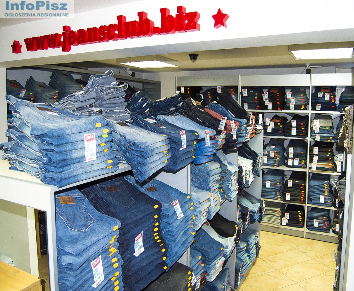 Ogromny wybór i najniższe ceny!!! Zarówno spodnie jeans jak i materiałowe oraz sztruksy. Modele klasyczne, rurki, slim, bojówki oraz poszerzane - bootcut. Kurtki jeans, krótkie spodenki, skórzane paski, koszule, bluzy, swetry, t-shirty, czapki itp... Sklep JEANS CLUB; Pisz; ul. Wojska Polskiego 12 B (przy widełkach z ul. Mazurską). Zapraszamy od godz. 9:00 do 17:00 (sobota do godz. 14:00)