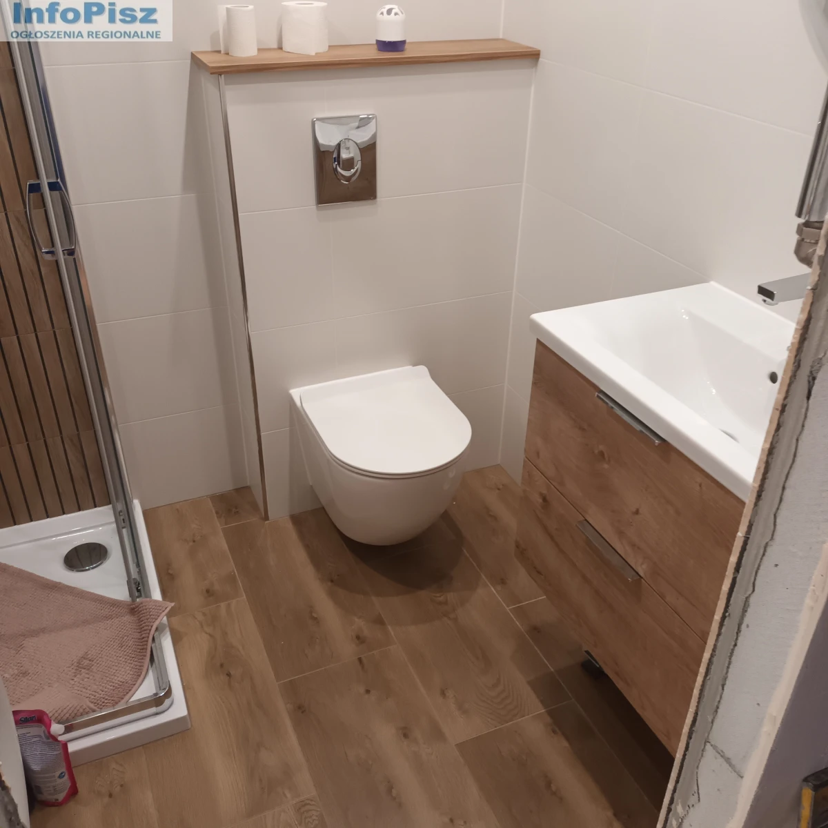 - Montaż paneli, drzwi, instalacji sanitarnych.
